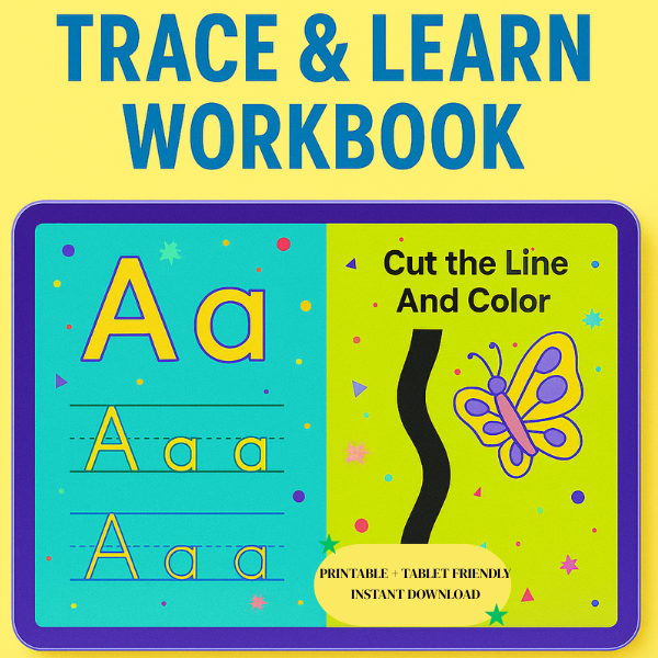 🌟 100-Page Trace & Learn Workbook for Kids (Printable + Tablet Friendly)